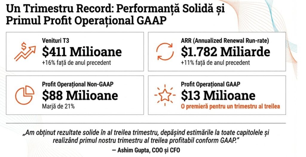 - Profitabilitate: Compania a atins o bornă importantă, înregistrând primul său trimestru al treilea profitabil din punct de vedere GAAP, cu un venit operațional de 13 milioane USD, o inversare semnificativă față de pierderea de 43 milioane USD din aceeași perioadă a anului precedent.